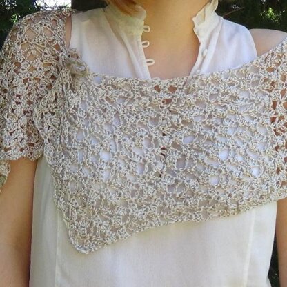 Worked in a luxurius shiny yarn it is the perfect layer above a dress to wear on a special occasion.