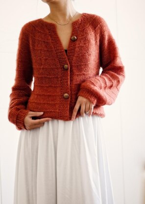 Elements Cardigan is a beginner friendly cardigan with a round yoke worked seamlessly from the top down. It does not use any short rows. The simple and repetitive pattern stitch is designed to complement neutral or earth tone colors.