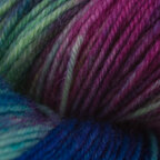 - Shown in RainCIty, but almost any pair of multi and solid fingering weight yarn should work.