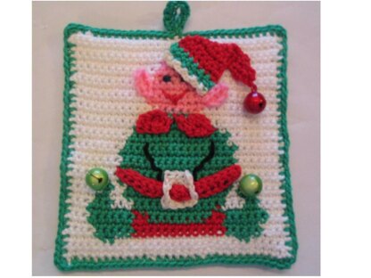 Crochet yourself a really cute Santa's Little Helper potholder. The finished size is 14cm x 15cm plus the hanging loop. Stitches used are slip, single, half double, double, half treble, treble and single decrease stitch. Instructions for all stitches used are included in the pattern together with many photographs to help you along.