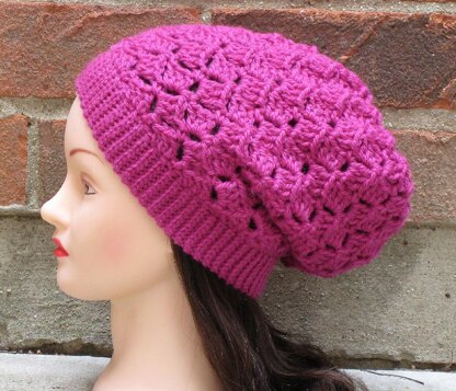 This pattern is for a sweet and simple slouchy beanie featuring a zigzagging stitch pattern and a snug knit-look brim. Quick and easy to work up, this is the perfect go-to winter beanie! The pattern comes with easy to follow step-by-step instructions and helpful, clear photos.