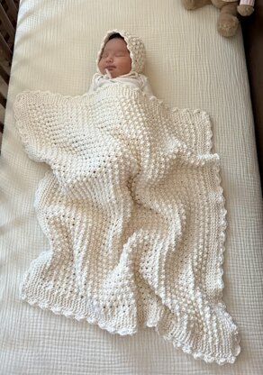 In this little Blanket and bonnet set ,I did use Basic stitches .i did make the blanket and bonnet for a dear niece ,and I did knitted only, but I did wanted to be more girly so I added more detail like a crochet edge . In the end this blanket and bonnet can be left just in knitted stitches but if you know how to crochet, you can add the crochet detail.