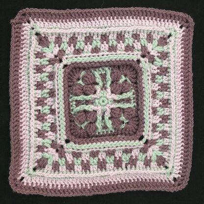 This square has been designed to fit the standard of 12 inches when worked in worsted weight yarn. When worked in thinner yarn the square will be smaller. My samples were worked in Stylecraft DK and measure 8.5 inches.