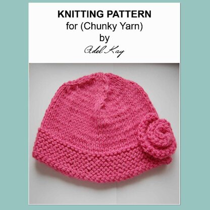 Elspeth Girls Ladies One Size Rose Corsage Pink Beanie Hat Chunky Knitting Pattern by Adel Kay