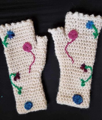 Embroidered Fingerless Gloves