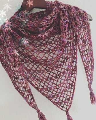 This scarf is a simple pattern with an easy-to-memorize four row repeat. The amazing hand-painted yarns available now make beautiful scarves. You can easily crochet a scarf with approximately 450 yards of 4-ply sock weight yarn (100 gram skein), such as the Ella Rae Lace Merino (shown), or any other hand-painted sock weight yarn. Emma’s Garden is started at the bottom point and crocheted upwards, and is very light and airy.