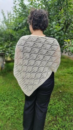 The white shawl is an essential accessory for every occasion. This shawl was inspired by Ljubljana, formerly named Emona, the capital of Slovenia. It is easy to make and suitable for advanced beginners. The shawl is an asymmetrical triangle with a leaf pattern throughout.