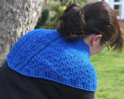 This pretty shawlette takes you on a walk through an English Country Garden. Starting with a garter tab, the shawlette is worked top-down using single-stitch cables/twisted stitches to lead you through a bed of eyelet flowers to an English Mesh Lace garden, and on to a gently scalloped edging. A central strip of leaf lace separates the two triangular side panels, creating a more gentle shape and avoiding a sharp point at the bottom of the shawlette.