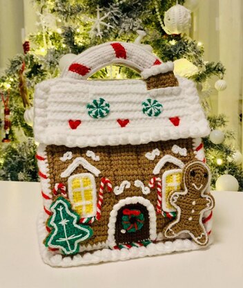 This pattern helps you create a unique Gingerbread House handbag/ purse. Entrelac (tunisian simple stitch) walls that look like gingerbread biscuits, embellished with candy canes, peppermint sweets, piped frosting, Christmas tree cookie and gingerbread man - absolutely endearing and simply beautiful. A great seasonal gift and truly a head-turner of a bag that's lets you stand out for sure.