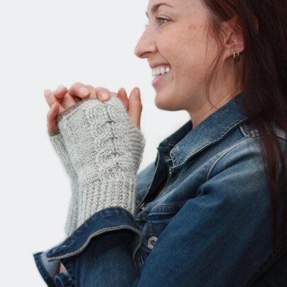 These knit-look fingerless mitts are worked in the round, and crochet up much faster then you would think! The mitts feature a bold crochet cable on the front, with a surprise second cable on the thumb.