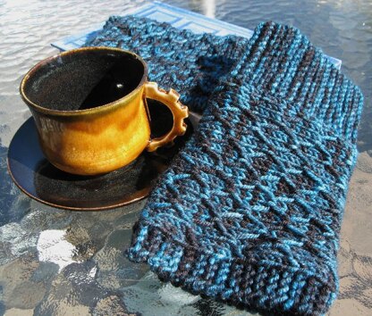 Knit flat with a 4-row pattern repeat, these mitts are quick and simple. Work until you have the right width, then two short seams to finish them off. The pattern is written for wrists from 5.5" to 8.5" in circumference. Length and thumb placement are easily customized.