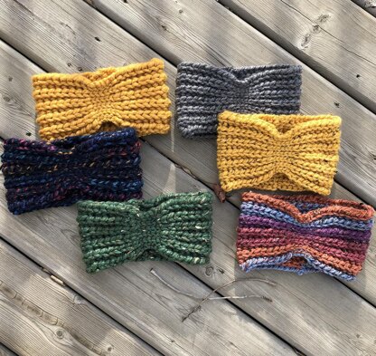 The pattern includes 2 instructions, one on how to make the headband with Lion Brand Wool Ease Thick & Quick and the other on how to make the headband with Loops & Threads Charisma yarn.