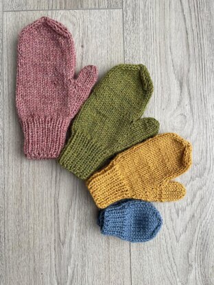 The mittens are knitted in the round from cuff to fingertips, with increases for the thumb. Great quick knit for the children in your life.