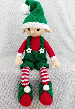 A Cute Christmas Elf, posable soft Toy with Dungarees and Hat