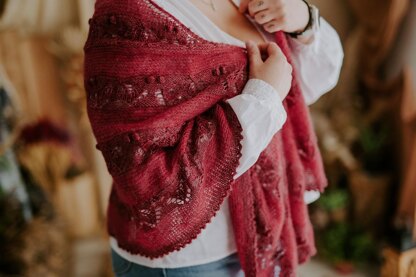 Evenrose is like a fairy tale of delicate leafy lace and fluffy Garter. It will take you on a fabulous journey through knits and purls in a soothing rhythm in two maginificent bases of yak blends, singleply Thibetanus and cuddly Nebula.