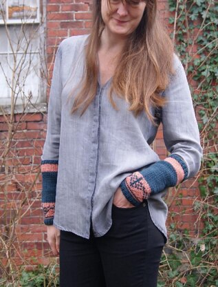 A pair of long cuffs to dress up a simple shirt and add extra warmth. They are knit flat and seamed with 2 options for the colorwork detail. Worked in the recipients favorite team or school color, these would be an extra special gift. (available as an individual pattern or part of A Few Simple Gifts ebook)