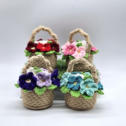 Finished size: approximately 5½” tall including handle and 3½” wide. Size depends on what type of yarn and hook you use.