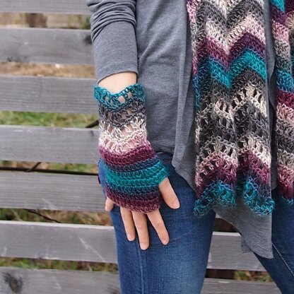 Everyday chevron scarf&fingerless mittens won week Design Wars challenge