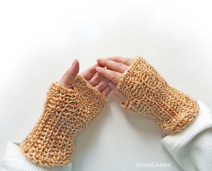 A beautiful and light pair of fingerless gloves with a wonderful drape. Fit for spring and fall. The gloves are stretchy and have a thin, rolled cord-like edging.