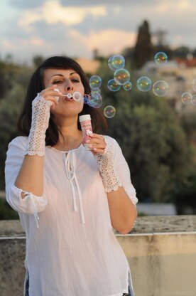 Both gloves are crocheted identically: back and forth in rows, lengthwise, in easy meshy pattern. The long ends of the glove are joined together as you work the last row, so you don’t need to do any sewing. Then you add edging on both sides in rounds.