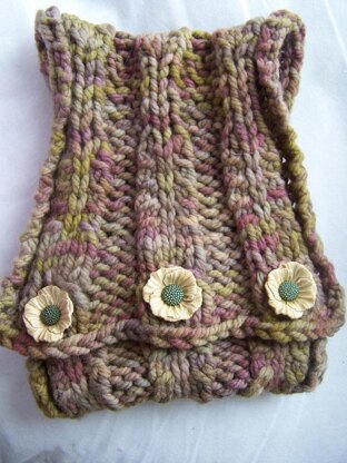 Fabric is reversible. This can be converted into a scarf by leaving off the buttonholes and knitting in pattern until the desired length is reached.