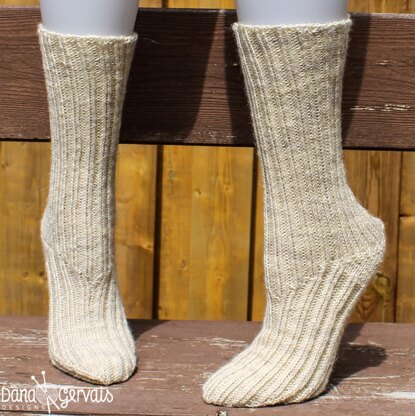 Instructions are provided for 5 circumfereneces and the foot length is customizable. Choose a circumference that is 10-20% smaller than the actual circumference of the wearer’s foot as measured at the widest part. Instructions are both written and charted, and are needle neutral so you can use your preferred method for working small circumference in the round.