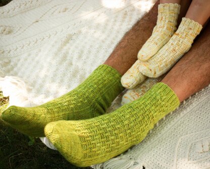 Man’s socks*: *Forbidden Fiber Co. Fortitude, 100% superwash Merino wool, 435 yd/100 g (398 m/4 oz), in Giggle Water
