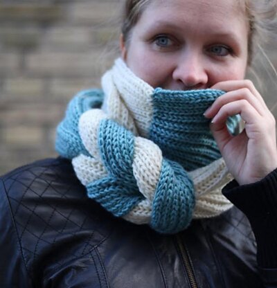 The cowl is worked flat in two pieces, then braided and seamed together. No previous experience with brioche is necessary, as everything is explained in the pattern.