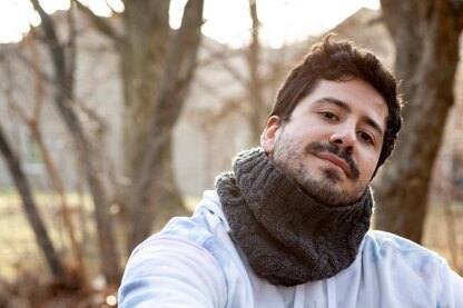 A hefty cabled neckwarmer to knit in two sizes (S/L) is just the thing to fill an open collar when cold winds blow. Simple cable crosses in a vertical pattern create a neat, modern motif that is engaging to knit and delicious to wear. Knit in a round, tightly twisted yarn for crisp stitch definition and a snug fit; for a softer texture and fit, work in a relaxed yarn or fiber blend. Sizing is easily adjusted to use a larger skein of yarn (see pattern notes).