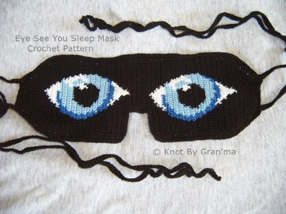 Intermediate pattern with a graph for color changes to create this unique sleep mask. Make it your own by changing colors and sleeping soundly under 2 wide awake eyes. You can use intarsia crochet techniques or tapestry crochet techniques. This pattern uses size 10 cotton crochet thread, a size 7 steel crochet hook, and very basic hand sewing skills.