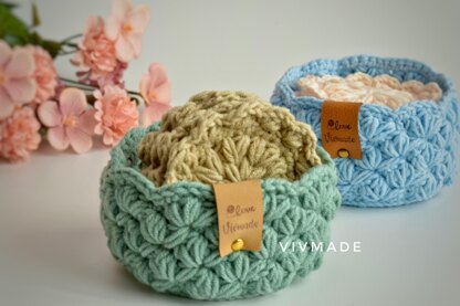 Finished size: Basket base diameter = 8.5 cm / 3.34” Basket height = 6 cm / 2.36” Face Scrubbies diameter = 8.5 cm / 3.34”