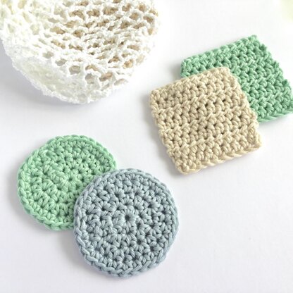 ___ Crochet Face Scrubbies ___ This listing includes patterns for classic round cleansing pads AND a square version - the corners are great for removing eye makeup, or cleaning up baby, etc and they are even quicker to work.