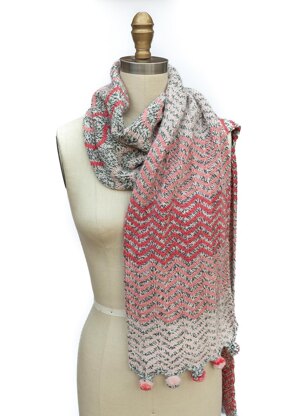The gradient stripes of this piece are worked in 2 halves, from the ends to the middle. Short-row shaping fills in the “diamonds” in the center. So many color options! Stash-busting tip: pick your MC, then work the stripes in similar-gauge yarn from your stash.