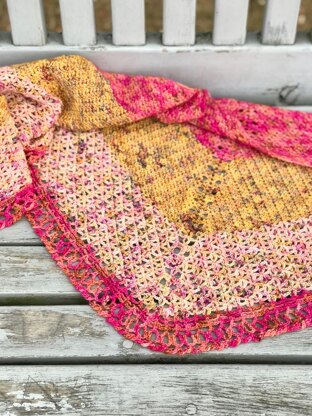 Fading Brightness is a large triangular shawl worked in handdyed sockyarn with a 'fading' look.