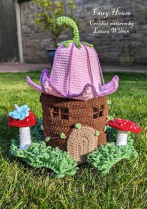 This is a downloadable PDF pattern written in US terminology. You will need to know the following crochet terms: mr- magic ring ch- chain sl st- slip stitch sc- single crochet hdc- half double crochet dc- double crochet tr- treble crochet inc- increase invdec- invisible decrease sc2tog- single crochet 2 together FLO- front loops only BLO- back loops only Materials needed: ● DK yarn- I used Hayfield bonus DK in: Chocolate, Walnut, Iced pink, Violet, Fern green, Grass, White, Ladybird, Ice blue and Amethyst ● Embroidery floss in brown and light green ● 3mm crochet hook ● 2mm crochet hook for the embroidery floss only (the ivy) ● Stitch marker ● Scissors ● Stuffing for toadstool stalks ● Yarn needle ● Sewing needle ● Pins to hold pieces in place when sewing ● Flexible clear plastic sheet- I used 0.5mm PETG plastic sheet A4 ● Clear sticky tape ● Tape measure ● Optional: LED battery powered tealight candles or string lights to put inside