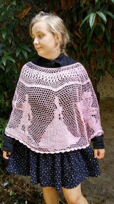 What little girl didn't grow up with the ideal of Prince Charming? Well, in this poncho you get the castle, the dragon, the prince and princess, and the fairy god mother! I hope you enjoy making it as much as I did creating it!
