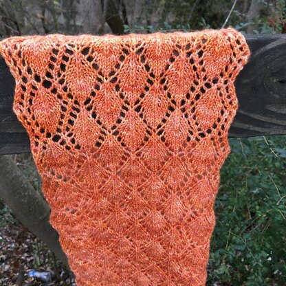 Wrap: 18 sts x 21 rows = 4 in/ 10 cm in Fall Leaf Lace after wet blocking