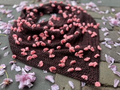 This cowl features the assigned pooling technique. It begins as a top-down triangle with increases at each end and down the center. When the desired neck circumference is achieved, the work is joined in the round and continued downward, maintaining the increases at the center front.