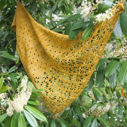Falling blossoms shawl is fun to make lightweight small shawl. It’s with asymmetrical triangular shape. This beautiful shawl is perfect when you need to put something small around your neck or shoulders during transitional seasons. The flow between sections and the asymmetrical shape makes it look elegant and modern. It’s perfect 1 skein project.