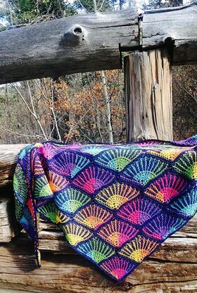 This shawl is knit using mostly short rows technique. It’s worked in horizontal rows, from the bottom of the triangle, and can be knit any size. The stitches for every consecutive row are picked up from below. The rows are knit continuously; there is no need to break yarn and change color for every element. It’s very easy on hands, because you work on a small number of stitches.