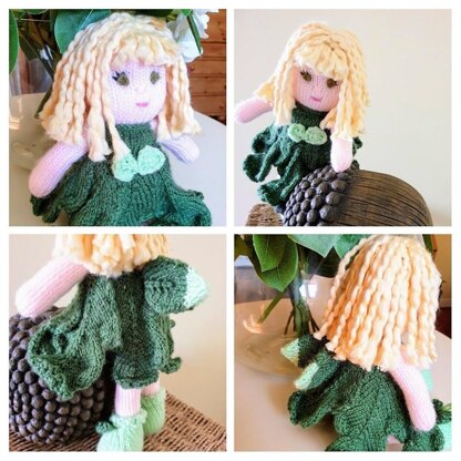 Hi, Faraway is a lovely little fairy. Her dress is based on an oak tree leaf design and inspired by my imagination of a fairy in the Enchanted Wood by Enid Blyton.. The oak leaves have only one cast off end so no worry on having loads of ends on leaf to weave in. I choose not to add leaves to her hair but if you want to, make up two to four more and attach as a hairband. I hope you enjoy knitting this pattern. If you have any problems do not hesitate to get in touch with me. Thanks!