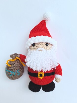 Father Christmas measures approximately 6.5 inches from top to bottom when worked with an 8 ply (US Light Worsted / UK DK) yarn and a 4mm crochet hook.