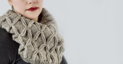This is a wonderful mindless knit with a stunning finish. The Faux Cable Cowl is simply knitted in the round with knits and purls. Taking little extra time after the knitting is all done to create the cable look.