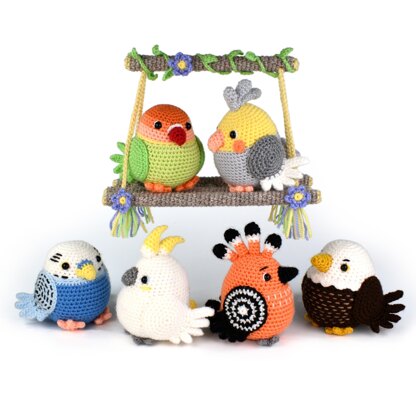 After a long hard winter, when the days are slowly lengthening again, these Feathered Friends can be heard tweeting and twittering in anticipation of all the spring glories to come. You’ll find them merrily chirping away in the sunshine or, on chillier days, snuggling up on their cosy bower seat, waiting for the clouds to pass. You see, it’s not just birds of a feather that flock together as this little group are very happy to prove! This listing is for a detailed written pattern, with complimentary photos to help you along the way. When made with light worsted weight (DK/8 ply) yarn and a 3 mm (+ 2.5 mm) hook the birds measures approximately 5 - 6” (12 -14 cm) tall Recommended safety eye size - 8 mm My patterns are written in American crochet terminology and include a handy stitch conversion chart so you can translate to British crochet terms instead should you wish to.