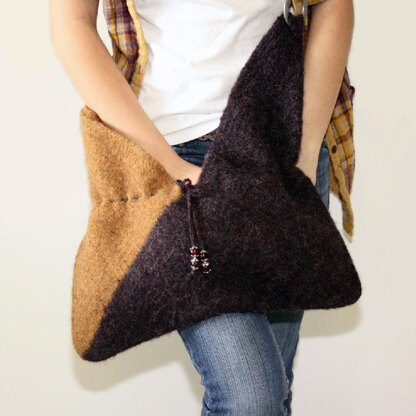 This stylish shoulder bag is first crocheted and then felted to produce a durable, fuzzy fabric. The entire bag is made using simple double crochet stitches and can be crocheted using 1, 2 or 3 colours. The hardest part will be deciding which colours to choose.