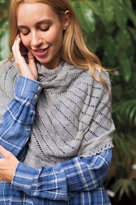 Inspired by the magnificent rose windows of medieval cathedrals, Fenestra is worked from the center out, according to your choice of pi or half-pi shaping (the half-pi version is shown), beginning with a central flower motif and meandering through classic stitch patterns to a simple but elegant knitted-on edging.