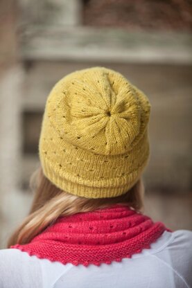 Sometimes a hat is not just for keeping out the winter winds. A hat can be the perfect accessory, just right for capping off a look, an outfit or a mood, or for trapping unruly hair! Our Fiddlehead, knit in your favorite Plucky Sport weight yarn (especially fantastic in cashmere!), uses a delicate eyelet pattern that might even let a warm breeze in.