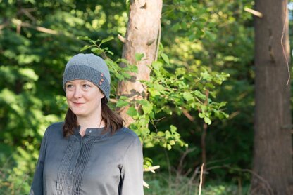 Fieldfare is worked from the top down in 2 colors. The brim is worked in a lacy rib pattern and optional decorative buttons are added. The fingering weight wool yarn allows it to be light weight and still keep you warm.