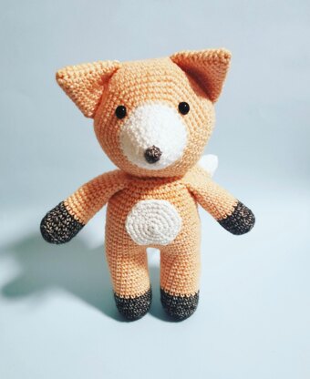 Fiero the Fox was one of my first designs! It makes a cute, standing toy which is a great size for little hands to cuddle and run around with. Now “retired” and available as a free pattern. I hope you enjoy making Fiero.