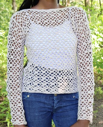 This cover up is perfect for summer. It is made using open stitches as an embellishment to complete a sleeveless outfit.